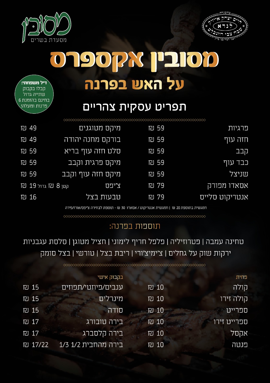התפריט העשיר כולל מנות שפע גדולות, טעימות וטריות והכל בהשגחת ״הרב לנדא״.